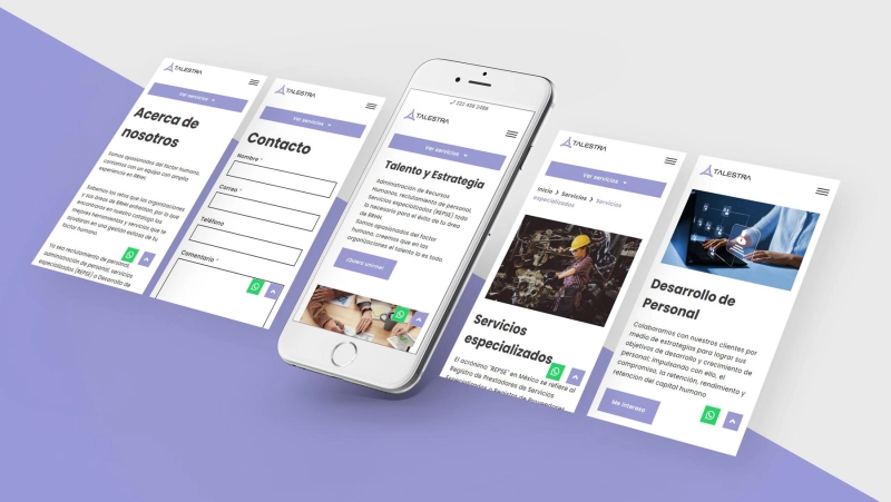 Sitio web de servicios administrablesEl sitio web de Talestra proporciona sus servicios para facilitar el contacto entre el usuario y la empresa.